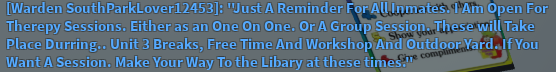 A warden's call for group or one on one therapy sessions, but in the old-timey constitutional English (the one where everything is a proper noun).